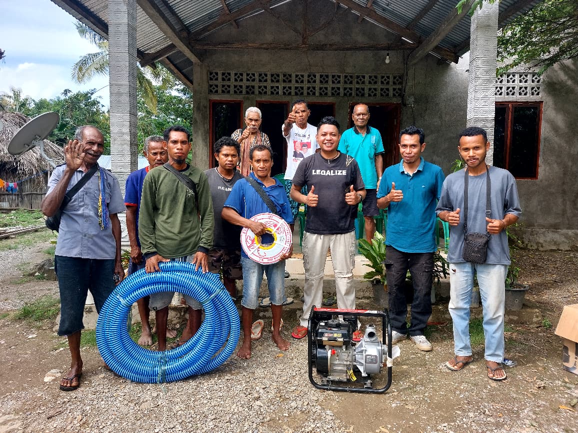 Bantuan berupa pompa diesel tipe Super Fighter lengkap dengan selang pengisap dan selang pembuangan sepanjang lebih dari 60 meter itu diserahkan melalui kerabat yang mewakili Frans Aba. Bantuan diterima langsung oleh Ketua Kelompok Tani Kasih Mama, Justus Petrus Karma, disaksikan anggota kelompok tani, warga setempat, serta Kepala Dusun Bonatama.