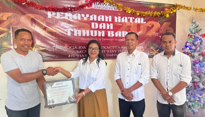 Atambua, NTT-News.Com-Badan Pengawas Pemilihan Umum (Bawaslu) Kabupaten Belu menggelar acara perayaan Natal dan Tahun Baru bersama Persatuan Jurnalis Belu Perbatasan (Pena Batas) Republik Indonesia-Republik Demokratik Timor Leste (RI-RDTL).